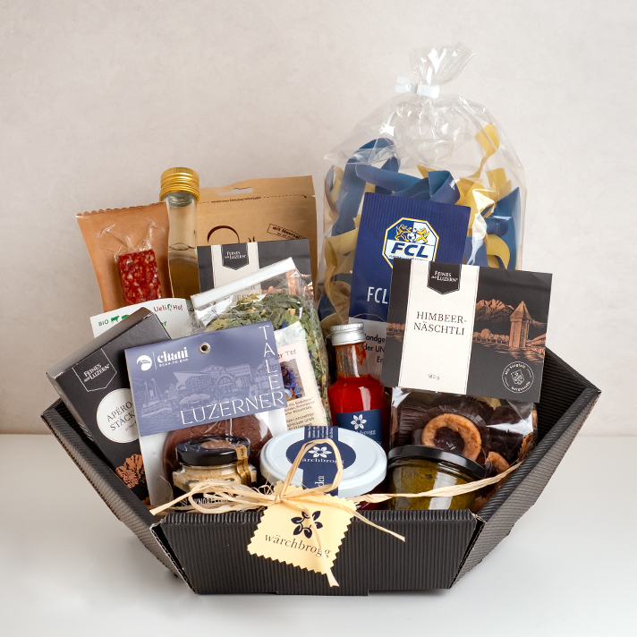 De Lozärner – bietet eine sorgfältig zusammengestellte Auswahl an regionalen Delikatessen aus Luzern und Agglomeration. Enthalten sind hochwertige, möglichst nachhaltig produzierte Produkte von lokalen Herstellern. Jeder Korb wird liebevoll von Mitarbeitenden mit Beeinträchtigung bei der Wärchbrogg Luzern zusammengestellt, wodurch Sie mit Ihrem Kauf soziale Inklusion und Nachhaltigkeit unterstützen.