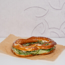 Frische Brezel, grosszügig bestrichen mit cremigem Frischkäse – herrlich weich und zugleich wunderbar knusprig. Ein leichter, fein abgestimmter Genuss für den perfekten Snack zwischendurch.