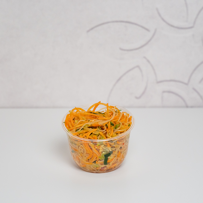 The glass noodle salad delights with tender noodles, crunchy vegetables, and a finely balanced Asian-inspired marinade—light, aromatic, and refreshing.