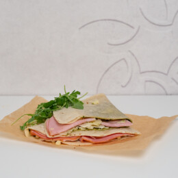 The Prosciutto Piadina combines delicately cured prosciutto with fresh ingredients in soft flatbread.