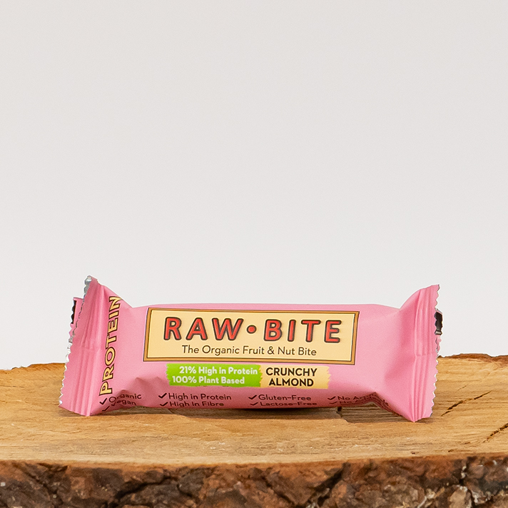 Zutaten Crunchy-Almond: Getrocknete Datteln 45%, Mandeln 20%, Reisproteinpulver 14%, Kürbiskerne, Kakaopulver, Kakaonibs