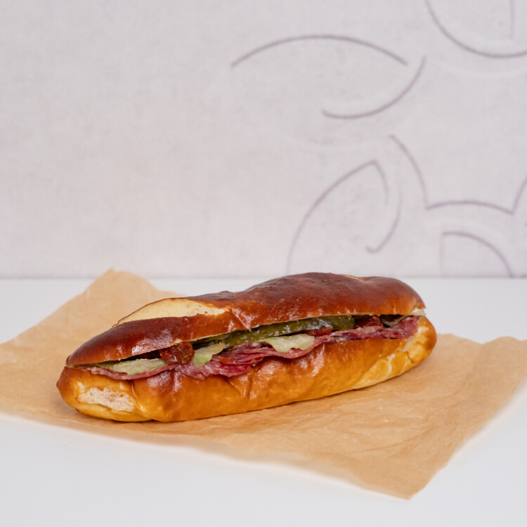 Knuspriges Silserli, fein belegt mit würziger Salami für herzhaften Genuss bei jedem Biss.
